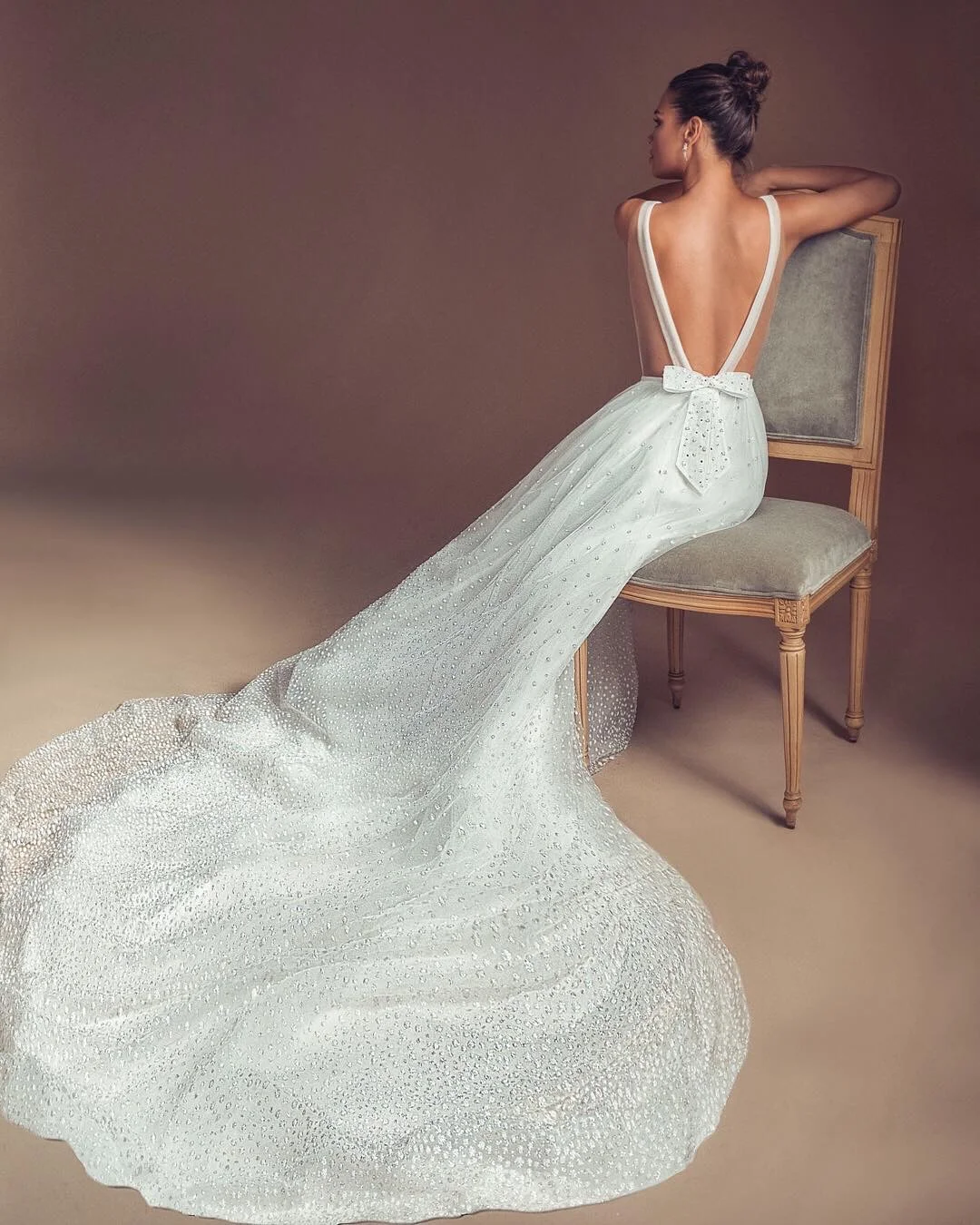 Bows are back. The new deconstructed versions are more statement and super-structural, adorning shoulders, backs, veils, embroideries, and veils. The bigger the bow, the edgier the look.